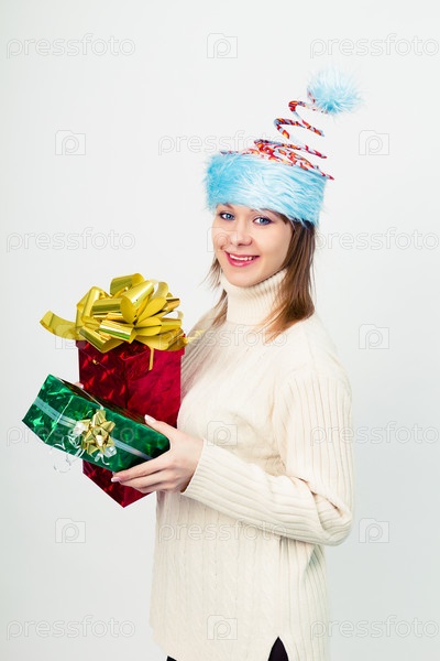 Счастливая девушка с Рождественскими подарками