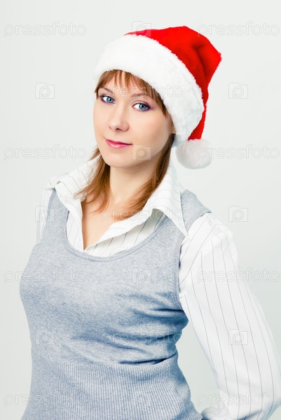 Девушка в колпаке Санты с подарком