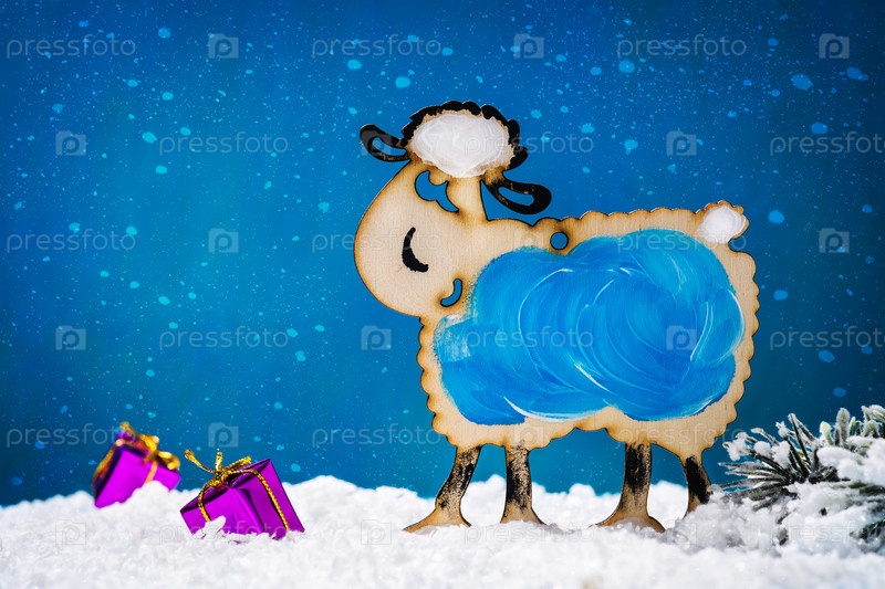 Деревянная игрушка в виде козла - символ 2015 года