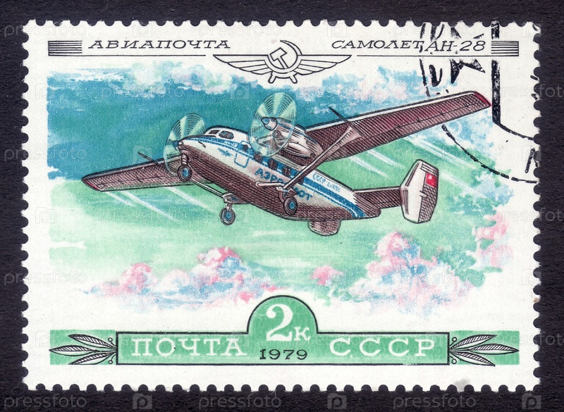 Почтовая марка СССР, авиапочта, самолет ан-28
