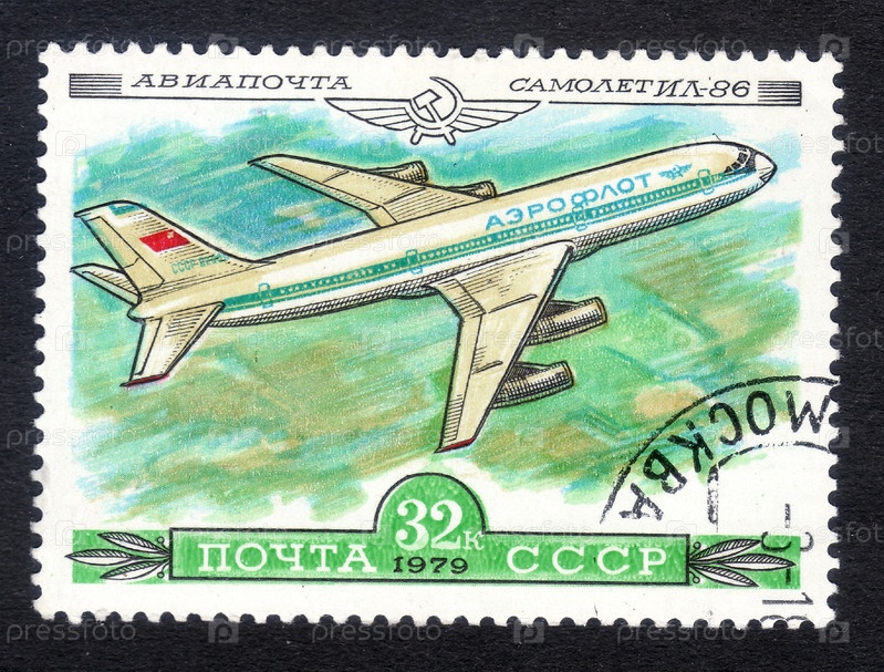 Почтовая марка СССР, авиапочта, самолет ил-86