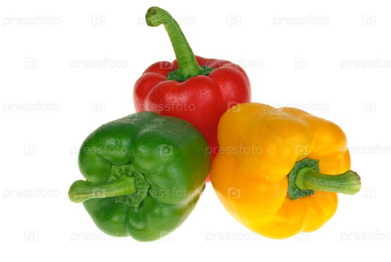Красный, желтый и зеленый сладкие перцы на белом фоне