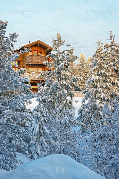 Коттедж в зимнем лесу