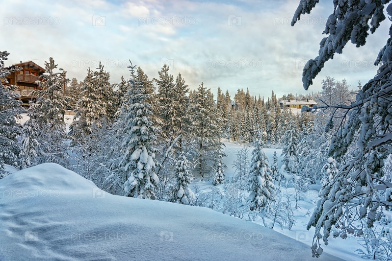 Коттедж в зимнем лесу