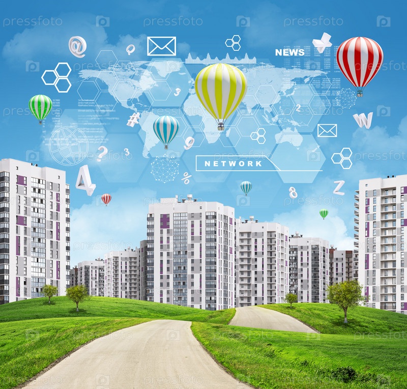 Дорога через зеленые холмы в направлении города