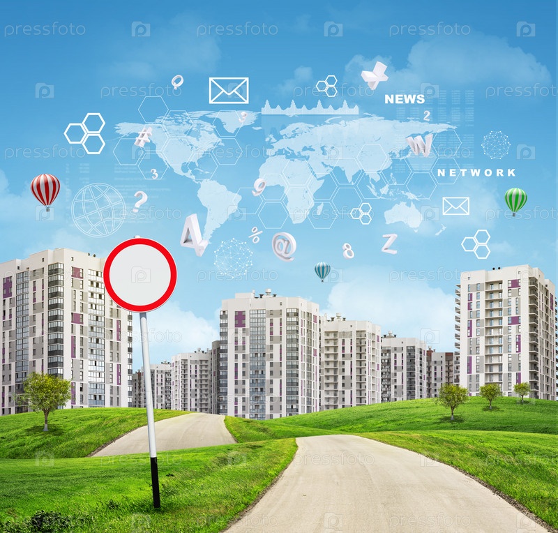 Дорога через зеленые холмы в направлении города