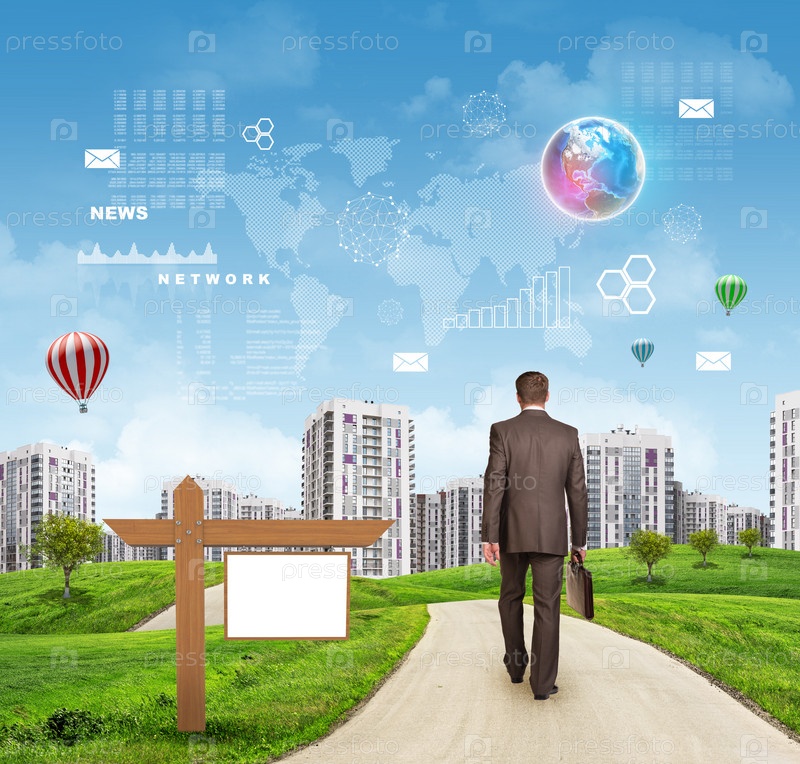 Бизнесмен на дороге к городу
