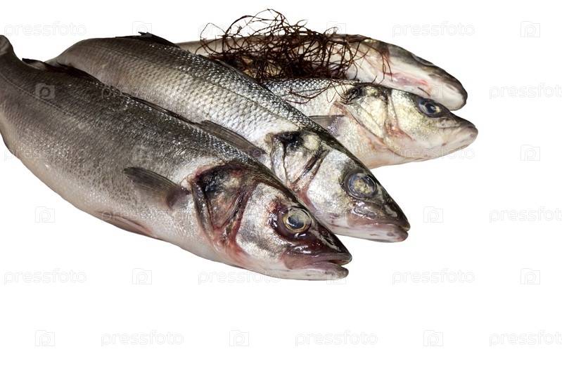 Свежий сырой лаврак, изолировано на белом фоне