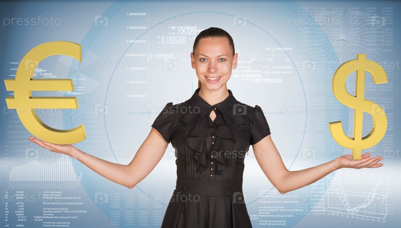 Бизнес-леди с символами валюты