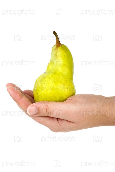 Груша на ладони. Белый фон