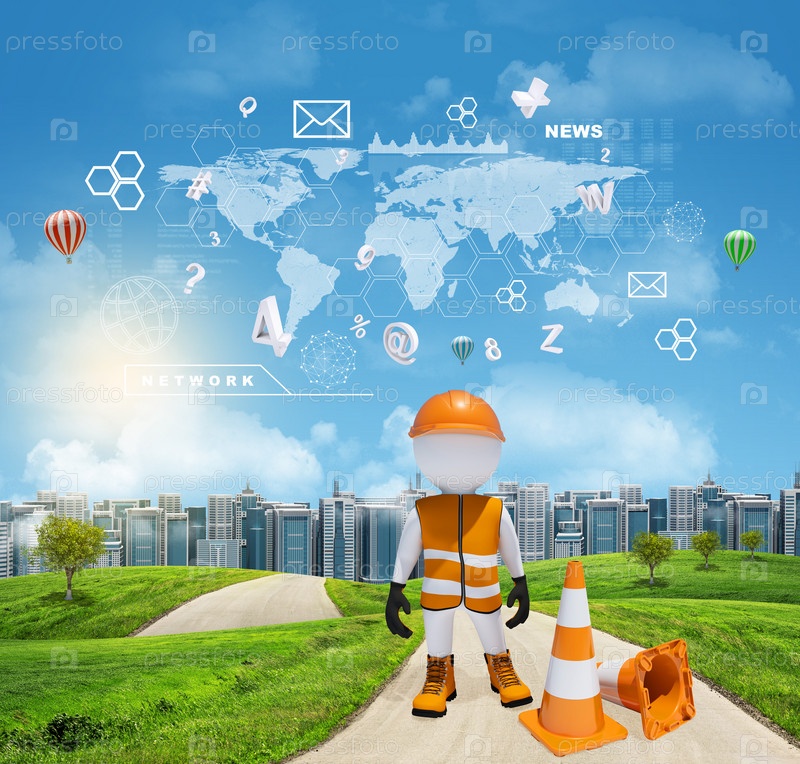 Дорожный рабочий на фоне города