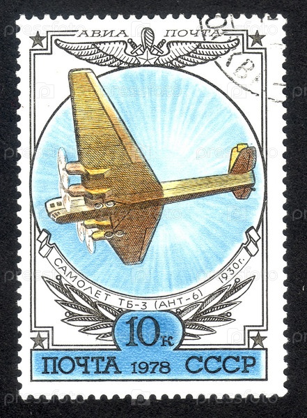 Почтовая марка СССР 1978 года Самолет ТБ-3 (АНТ-6)