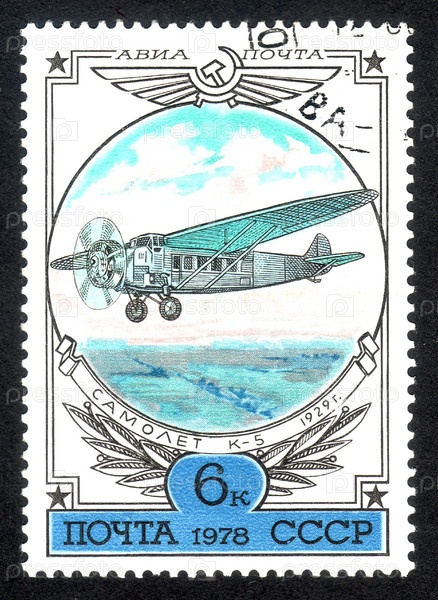 Почтовая марка СССР 1978 года, самолет к-5