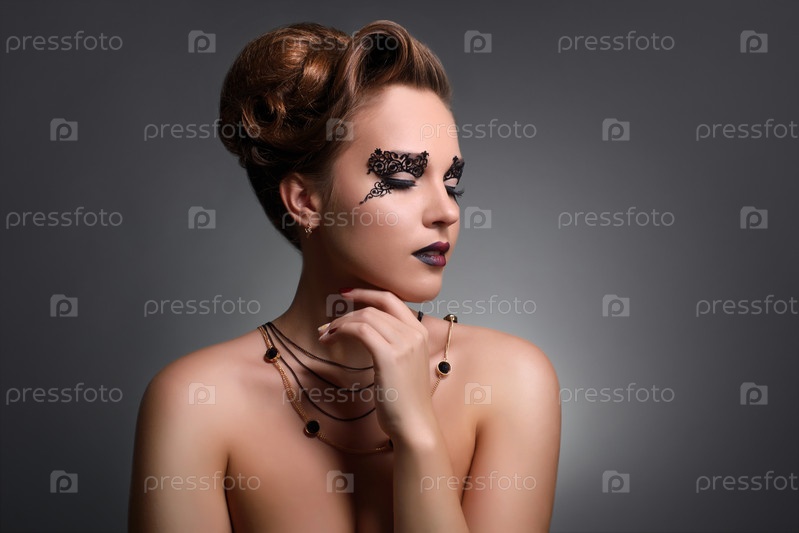 Модель с ярким макияжем на темном фоне