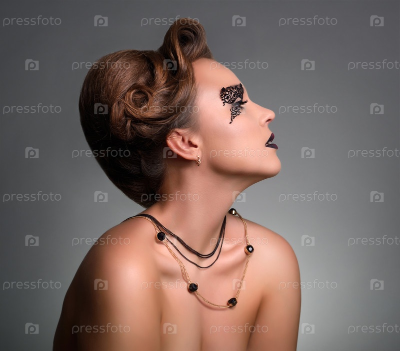 Модель с ярким макияжем на темном фоне