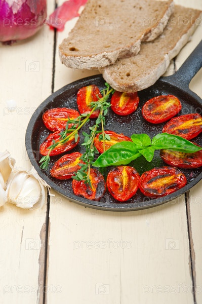 Запеченные помидоры черри с базиликом и тимьяном