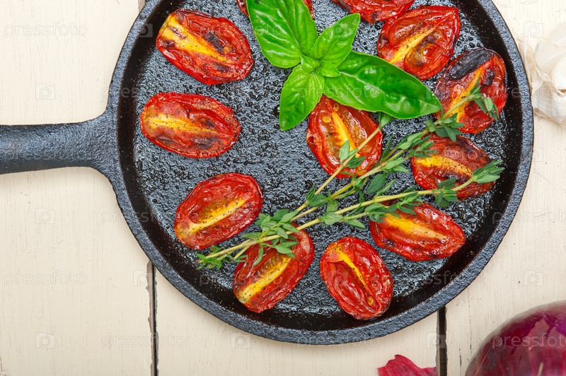 Запеченные помидоры черри с базиликом и тимьяном