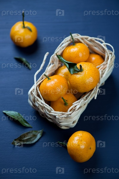 Спелые мандарины в плетеной корзинке