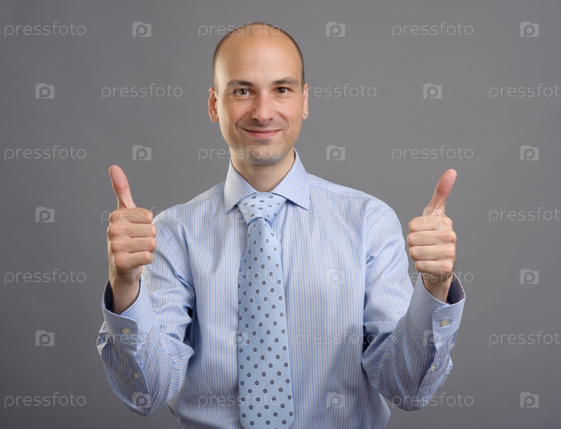 Улыбающийся бизнесмен показывает большие пальцы вверх