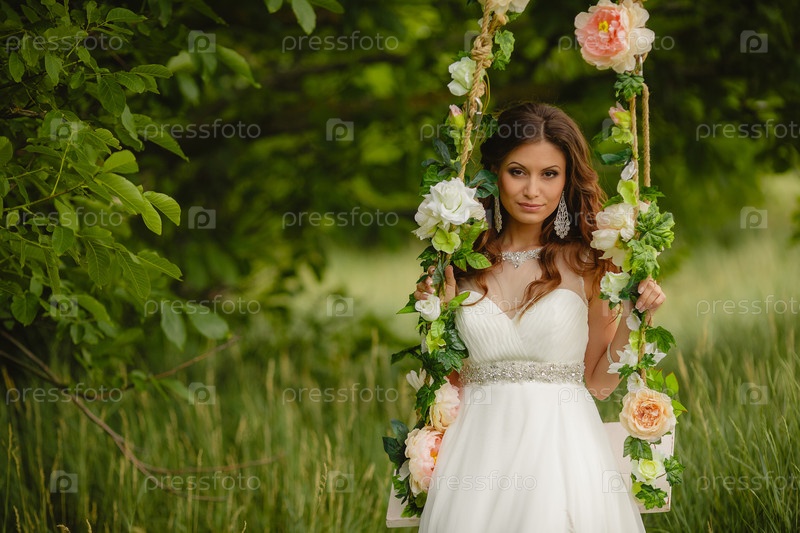 Красивая невеста на качелях в парке