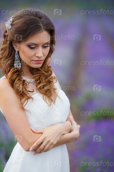Красивая невеста на поле лаванды