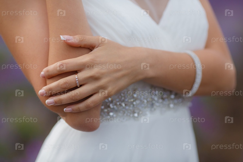 Красивая невеста на поле лаванды