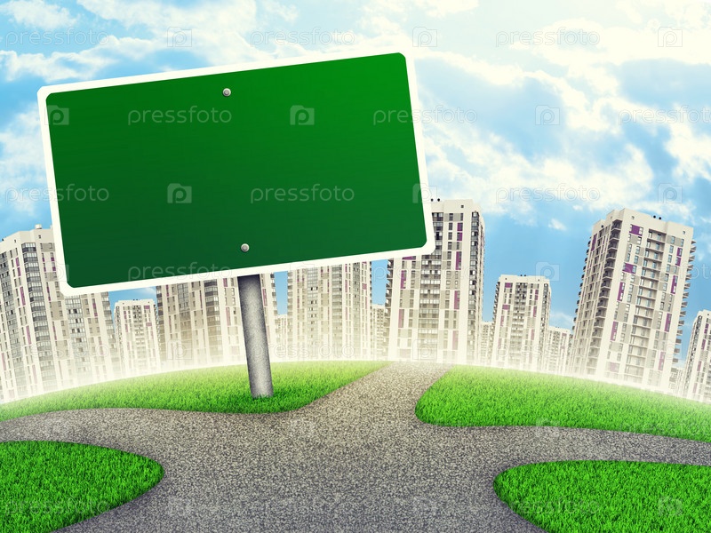 Пустой указатель на фоне города
