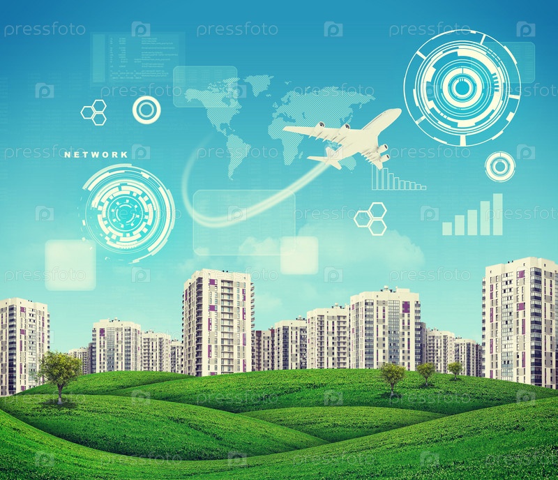 Графики, диаграммы и другие виртуальные объекты в небе над городом