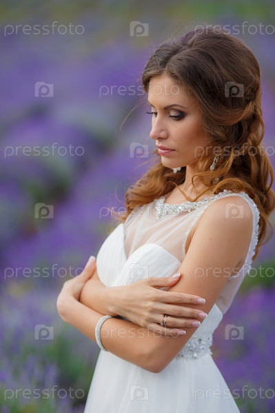 Красивая невеста на поле лаванды