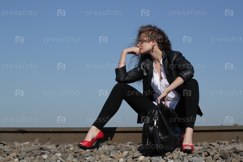 Девушка сидит на железнодорожных путях