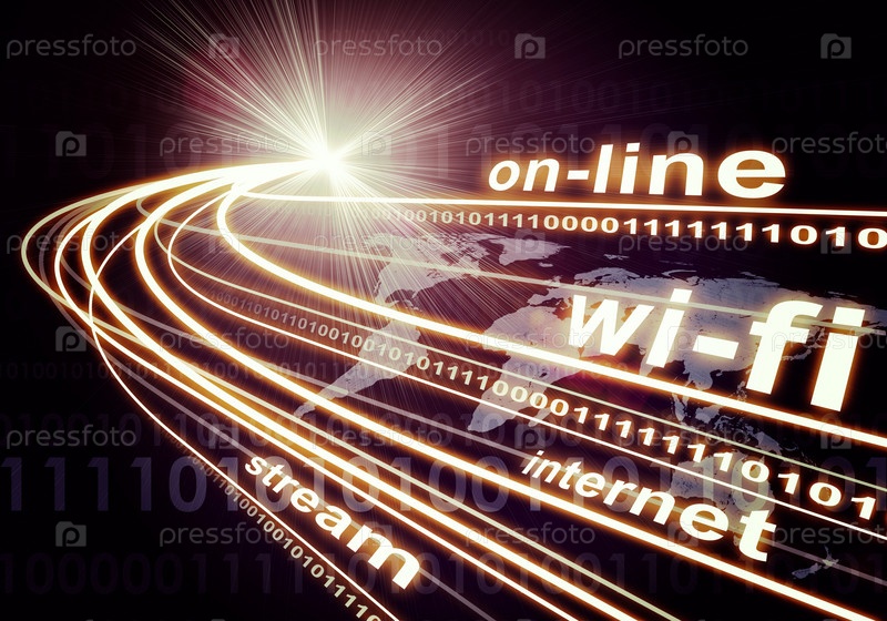 Земля, ноутбуки, цифры и слово он-лайн на темном фоне