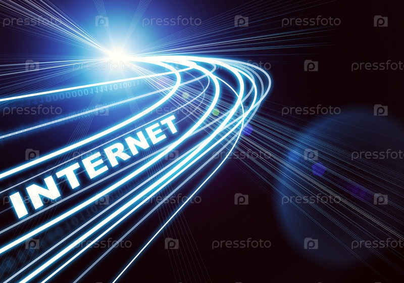 Лучи, цифры и слово Интернет на темном фоне