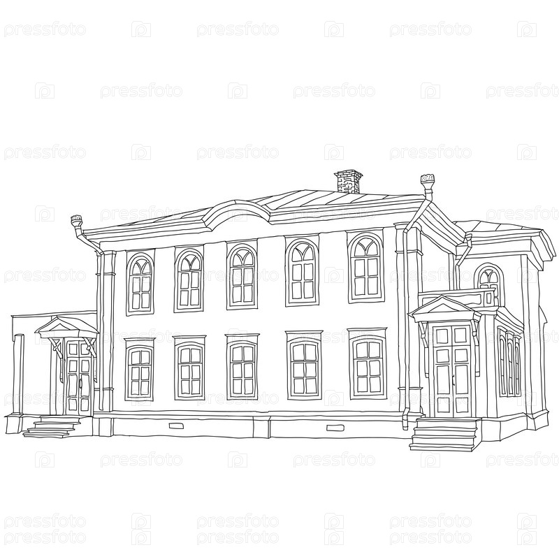 2-этажный деревянный дом Ульянова Ленина. Векторные иллюстрации