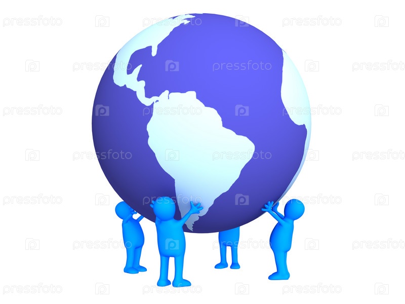 Четыре стилизованных человечка, держащие Землю в руках