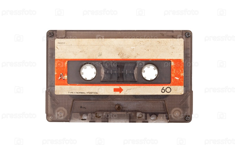 Старая аудиокассета на белом фоне