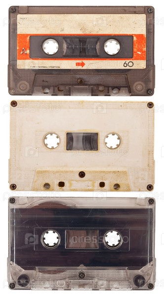 Старые аудиокассеты на белом фоне