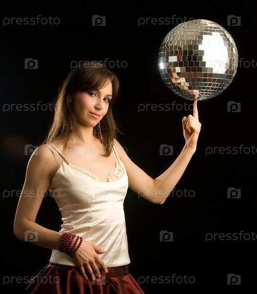 Красивая девушка с дискошаром