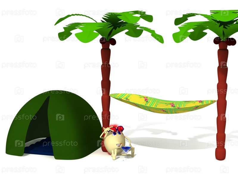 Забавный человечек сидит с коктейлем под пальмой