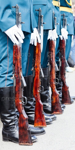 Солдаты на военном параде с оружием