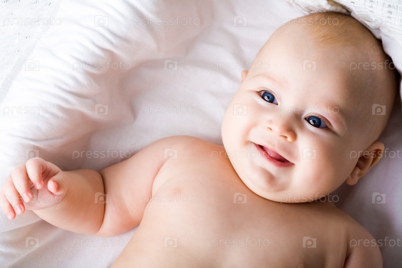 Сверху вид очаровательного мальчика, развлекающегося в колыбели