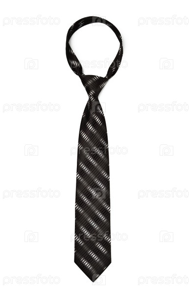 Черный полосатый галстук изолирован на белом