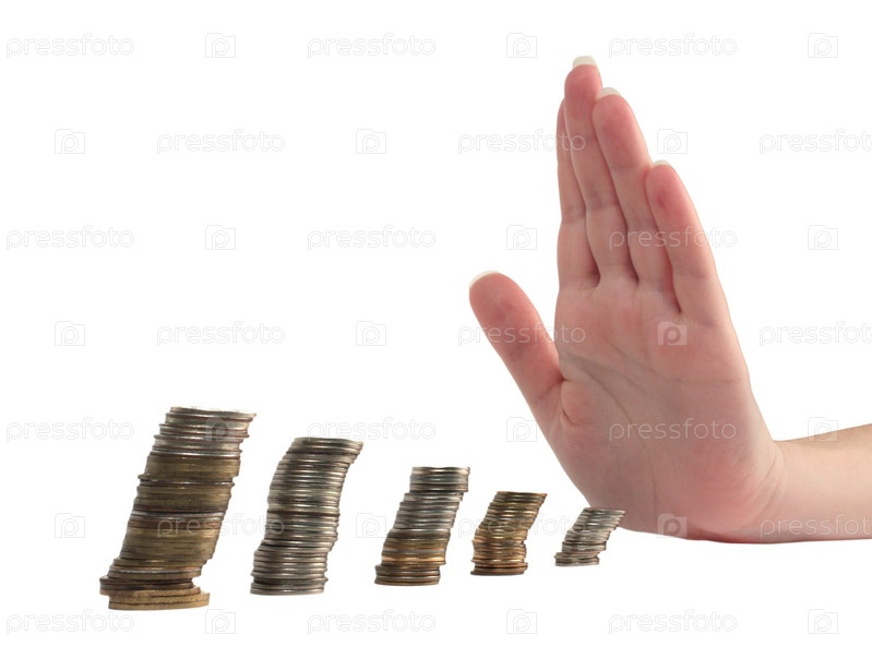 Концепция финансов, рука останавливает потерю дохода