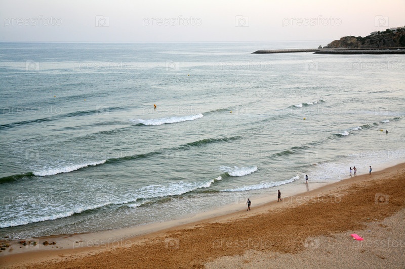 Романтический закат на пляже в Албуфейра Алгарве, Португалия