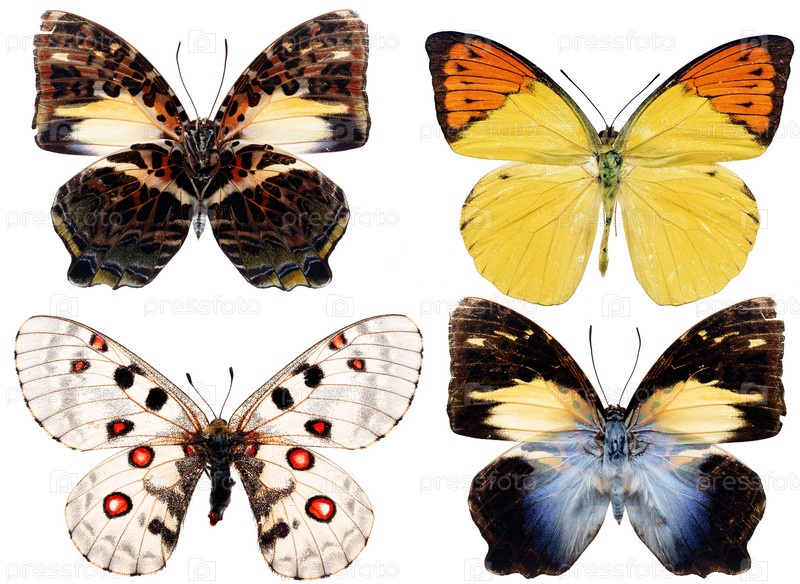 Коллекция бабочек на белом фоне