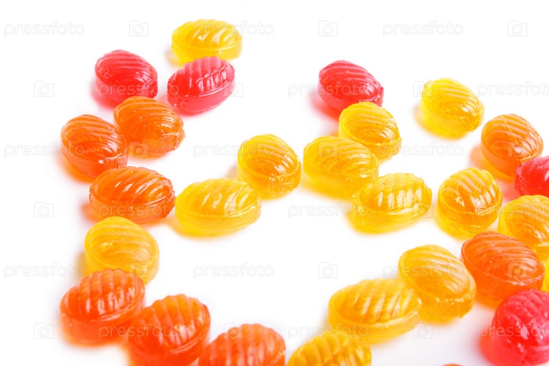 Россыпь карамели на белом фоне