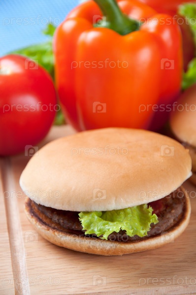 Аппетитный гамбургер на фоне свежих овощей