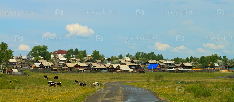 Вид на деревню и пастбище