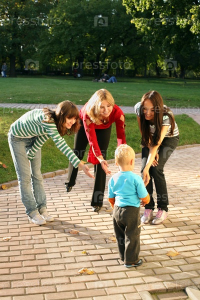 Девушки играют с маленьким мальчиком