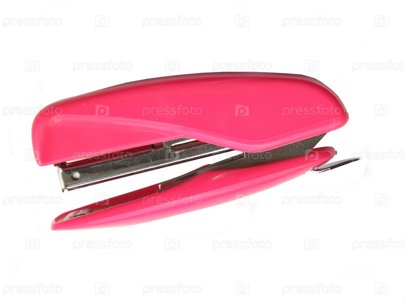 Розовый степлер на белом фоне