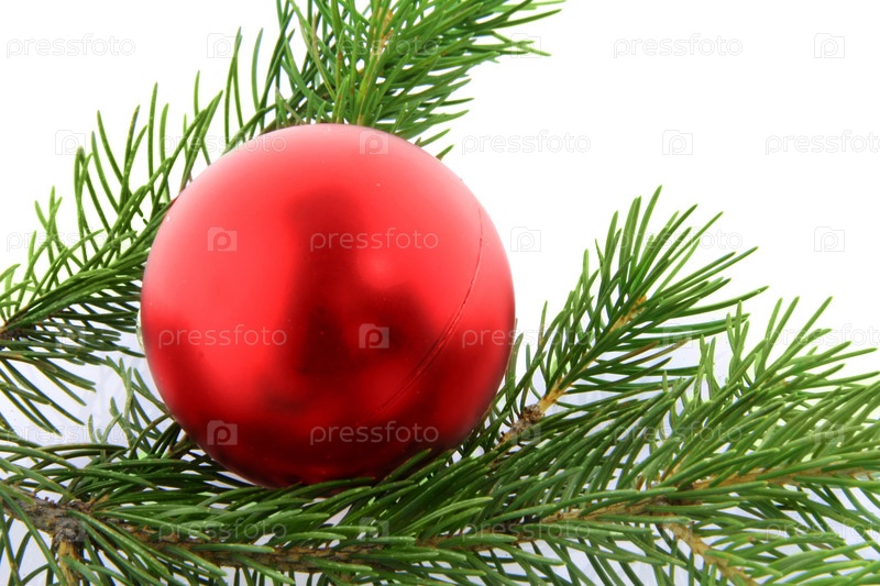 Елочный шарик на ветке крупным планом